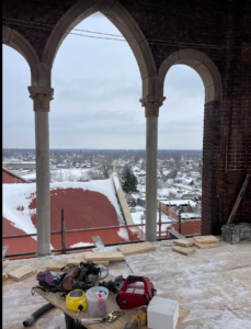 The tower repairs continue to move forward! The scaffolding construction is in process, with the brick-and-mortar repairs to begin once it is in place. Do not underestimate the magnitude of this project or the unwavering support of our parish and community. This is a huge step forward for Saint Stanislaus Kostka Parish!